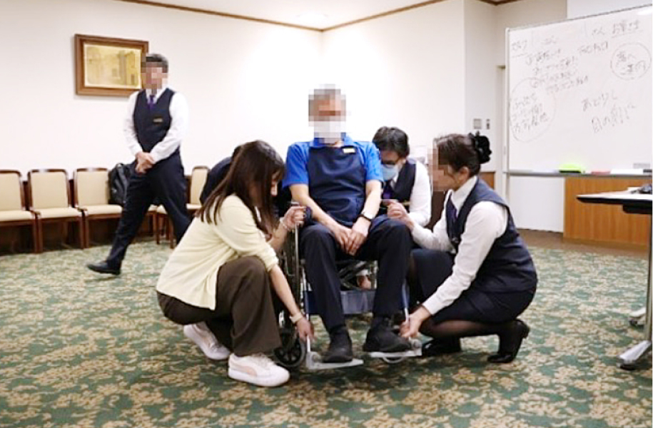 東京博善では、斎場スタッフがサポートを必要とする様々なお客様への適切な応対方法を学ぶことを目的に、社員研修を都内6カ所の斎場で随時開催しております。「相手の立場になること」を重視した形式で、火葬場という特性上、ご高齢のお客様が多くいらっしゃることを考慮し、様々なお客様に対して相手の立場に立った親切な応対を心がけるための研修を実施しております。