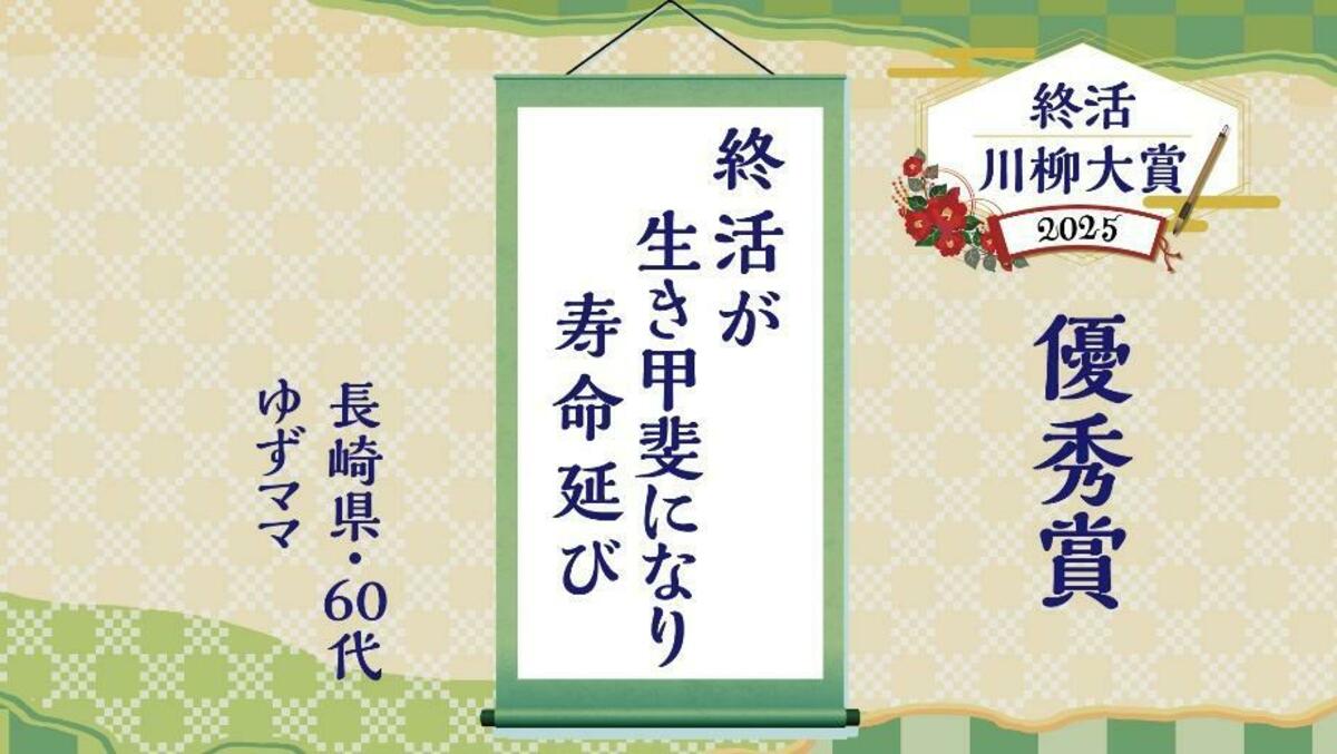 「終活川柳大賞2025」のユーモア賞に選ばれた三作品は、終活に関するさまざまなシーンを現代らしい表現でまとめられています。