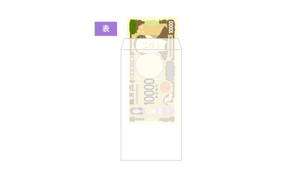 御膳料を包むときには、主にお札の向きに注意します。全てのお札の向きをそろえ、お札の表面(肖像画がある側)が封筒の表書き側にくるように入れます。