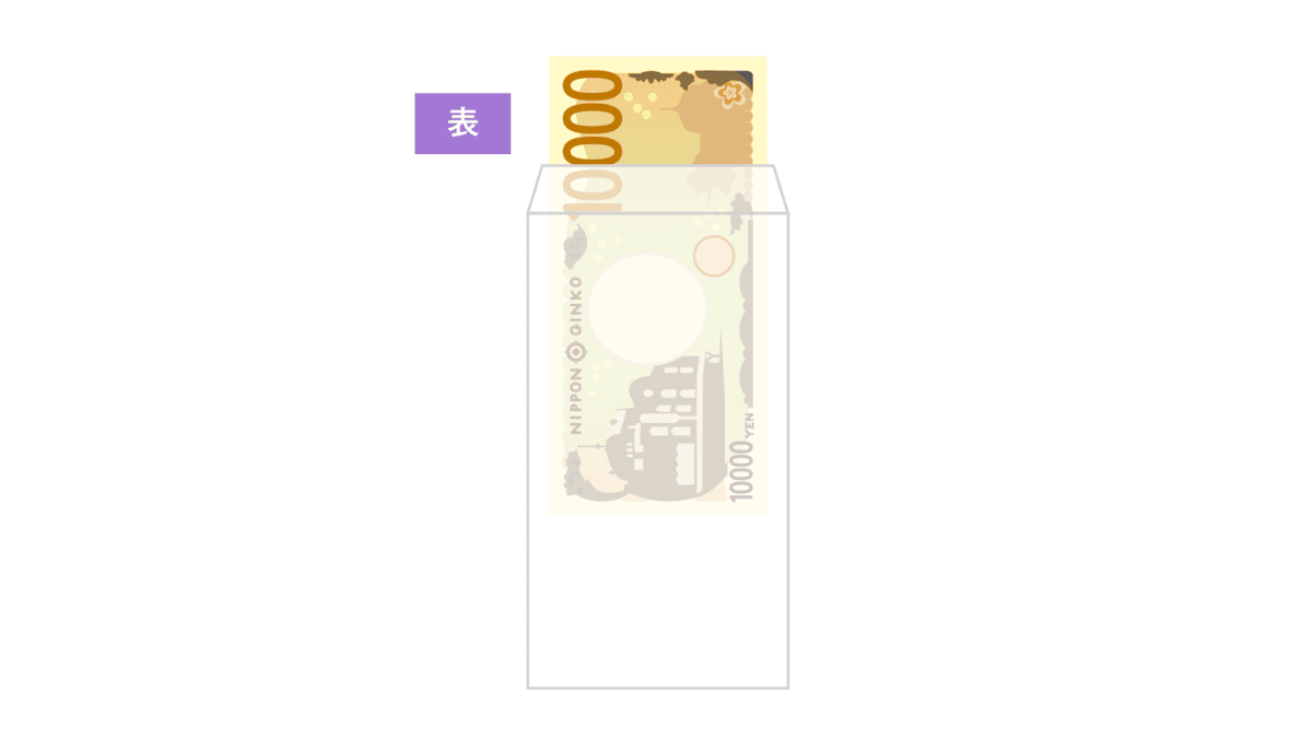 - 中袋あり・なしのどちらにおいても、お札は裏側かつ下向きにして入れる