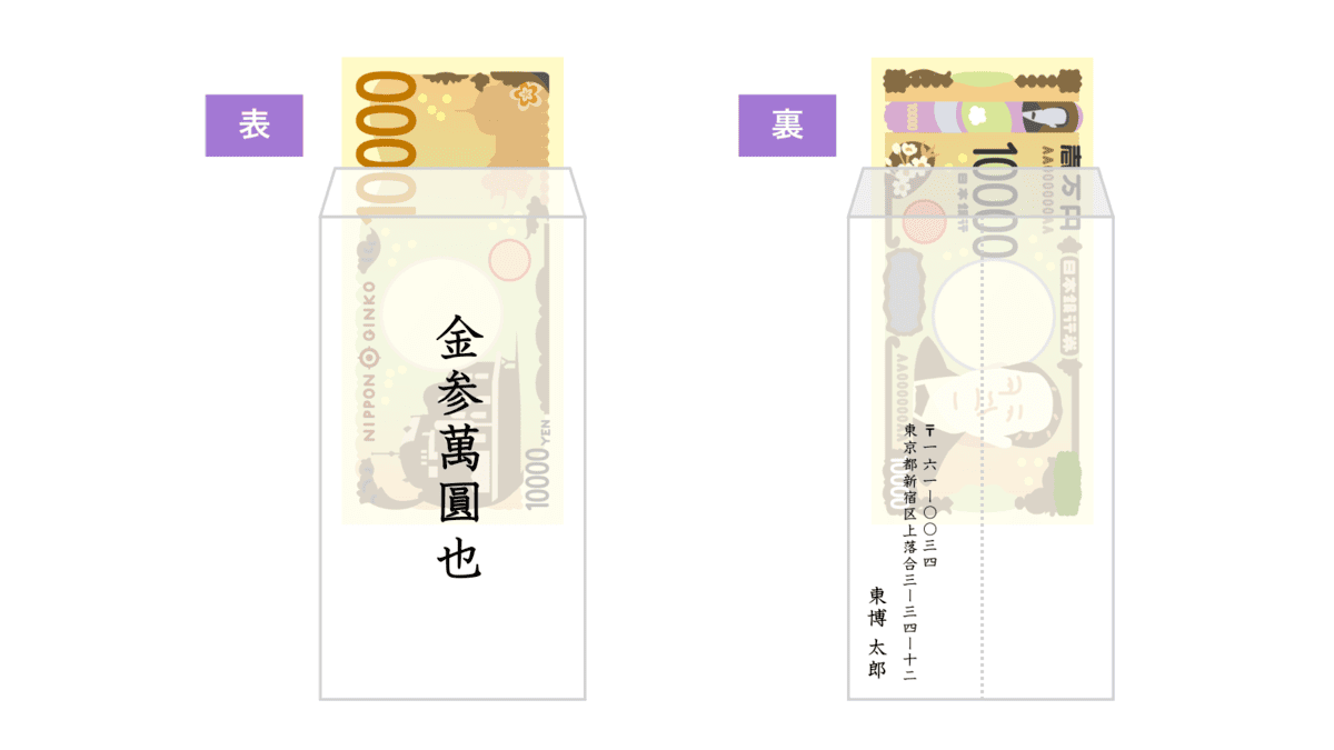 準備するお金は、適度に使用感のある古札を使用します。ただし、シワが多く入っていたり、破れていたりなどあまりにも傷んだお金は適していないため注意しましょう。お金は、封筒の裏側を肖像画が向くようにし、全てのお札の向きを揃えて入れます。