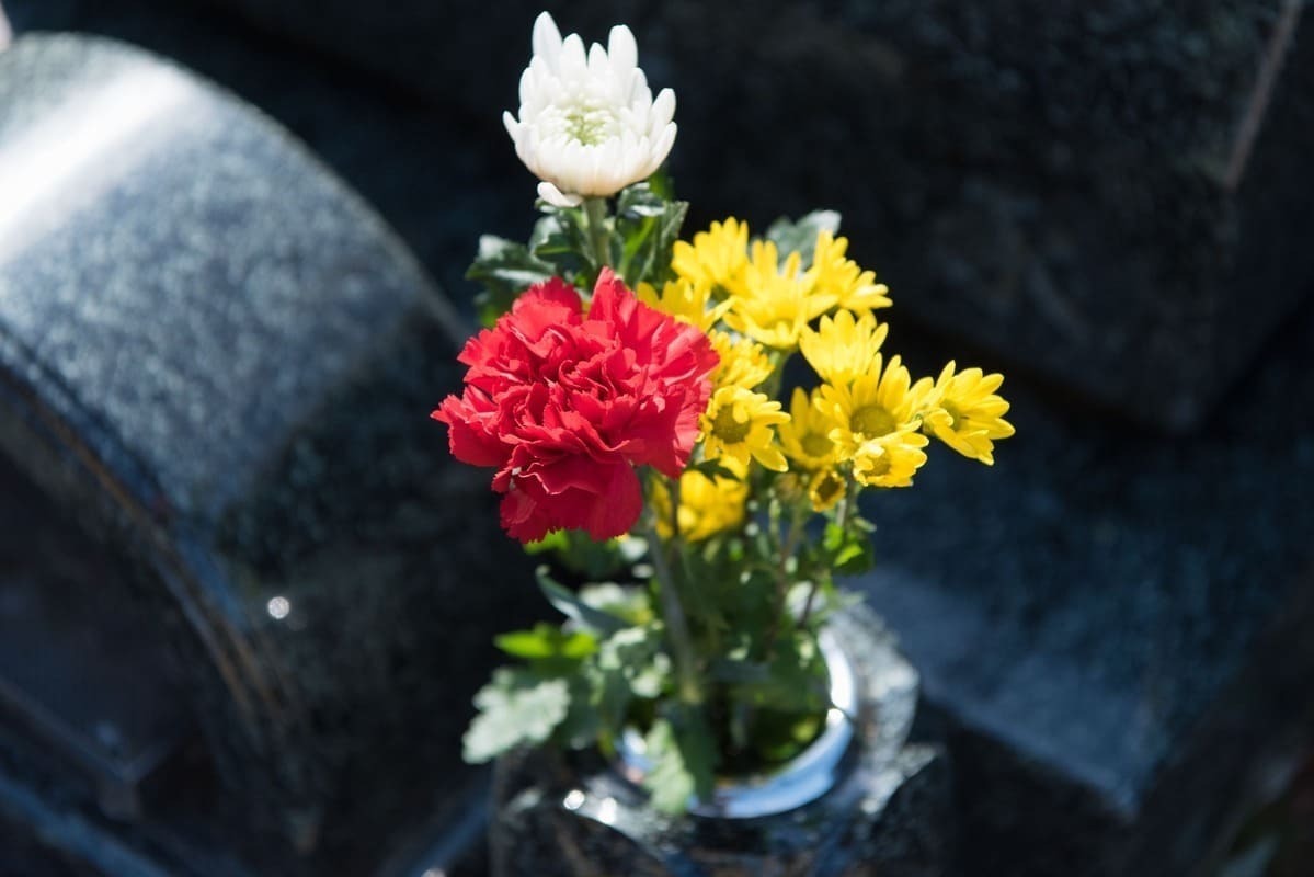 お花の選び方に明確な決まりはありませんが、春には牡丹、秋にはリンドウなど季節の花を使ってアレンジすることが多いです。季節の花が手に入らなかった場合は定番の菊や故人が好きだった花を使えば問題ありませんが、バラなどの棘がある花は殺生を連想させるため、避けた方がよいでしょう。