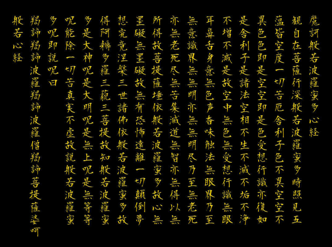まず、般若心経の全文は以下の通りです。僧侶が般若心経の全文を読む際は、音の終わりを伸ばすように唱えます。
