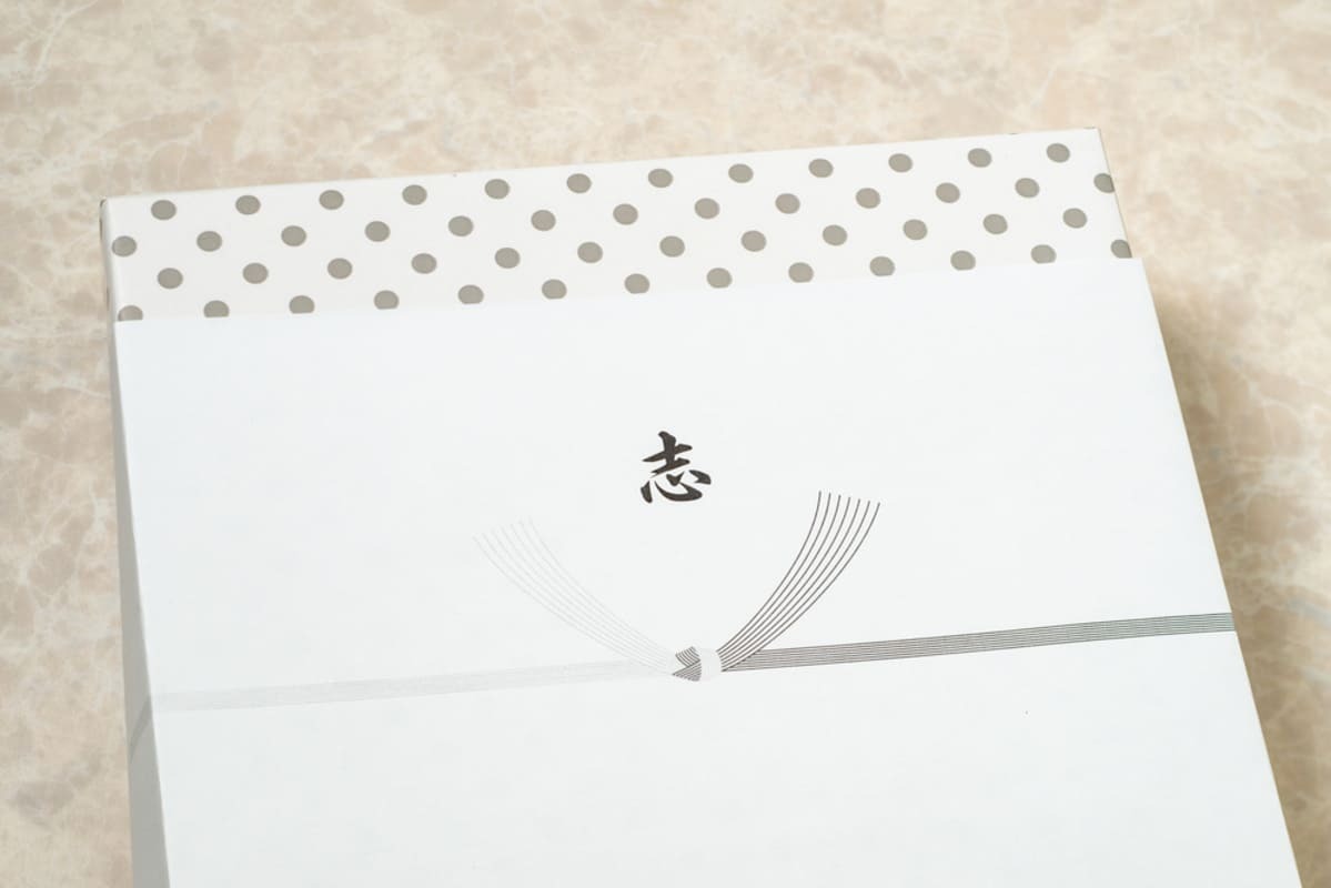 香典返しはあくまで弔事に関する事柄であるため、包装紙は弔事向けのものにし、包装方法にも注意してください。使用する掛け紙は水引が黒と白の結び切り(地域によっては黄色と白)になっているものを使用するのが一般的です。