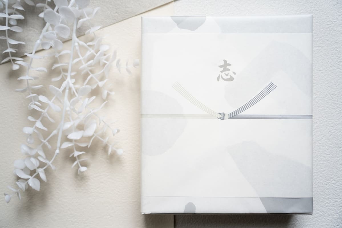 包装紙は弔事向けのものにし、包装方法にも注意する