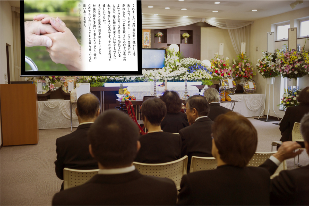 その一方で、メモリアルビデオ制作の需要が高まっています。メモリアルビデオは葬儀での上映だけでなく、DVDやデータとしてご遺族にお渡しするケースも増えています。これにより、ご遺族が故人を偲ぶ場面で活用できるだけでなく、葬儀に参列できなかった方々にも故人の思い出を共有することが可能です。