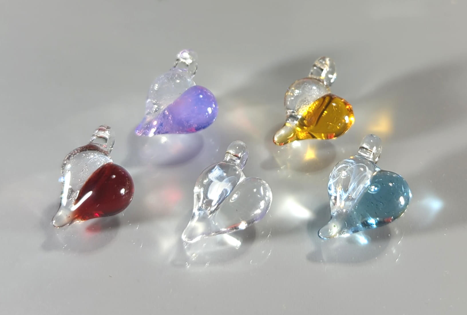 遺骨と耐熱ガラスを混ぜて遺骨ガラスを作り、位牌やアクセサリー、置き物に加工して供養グッズを制作致します。